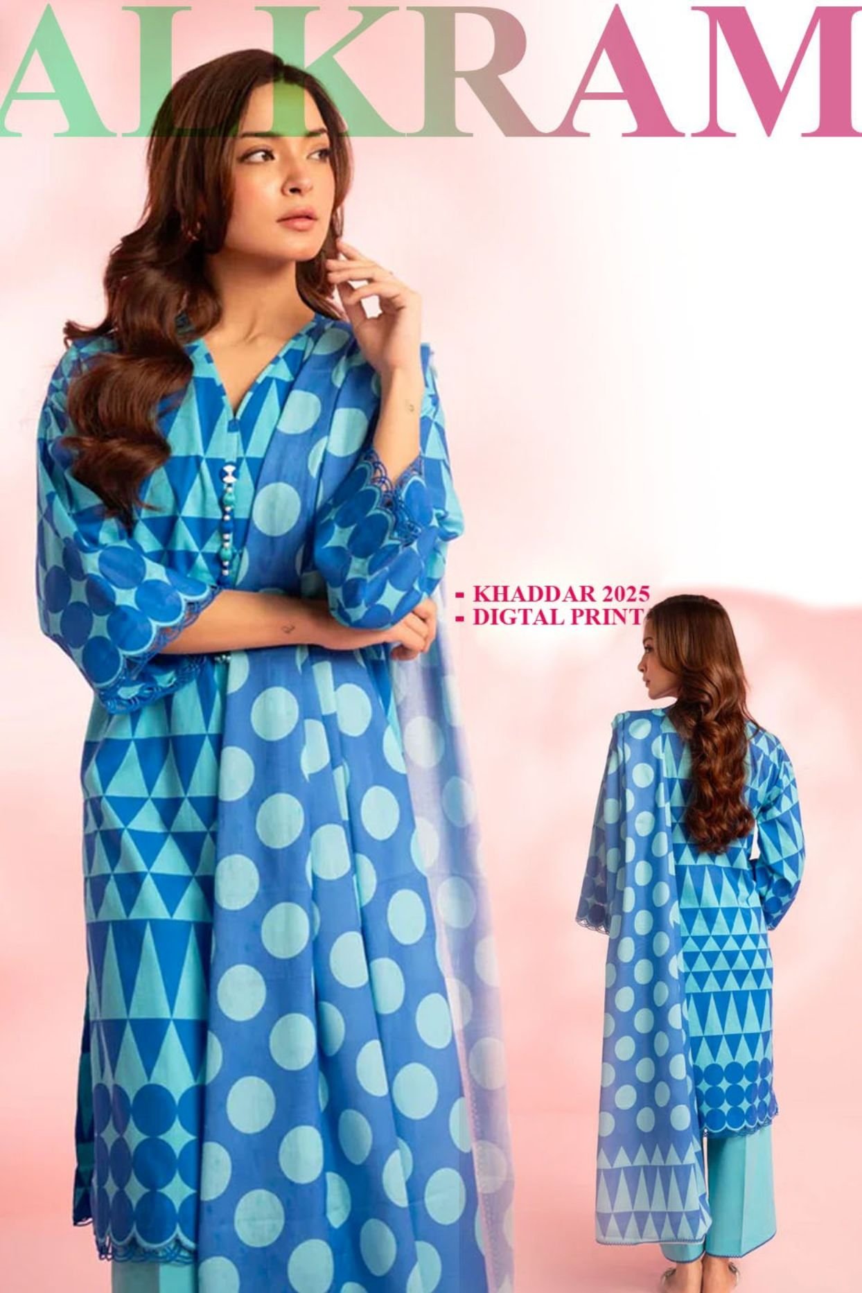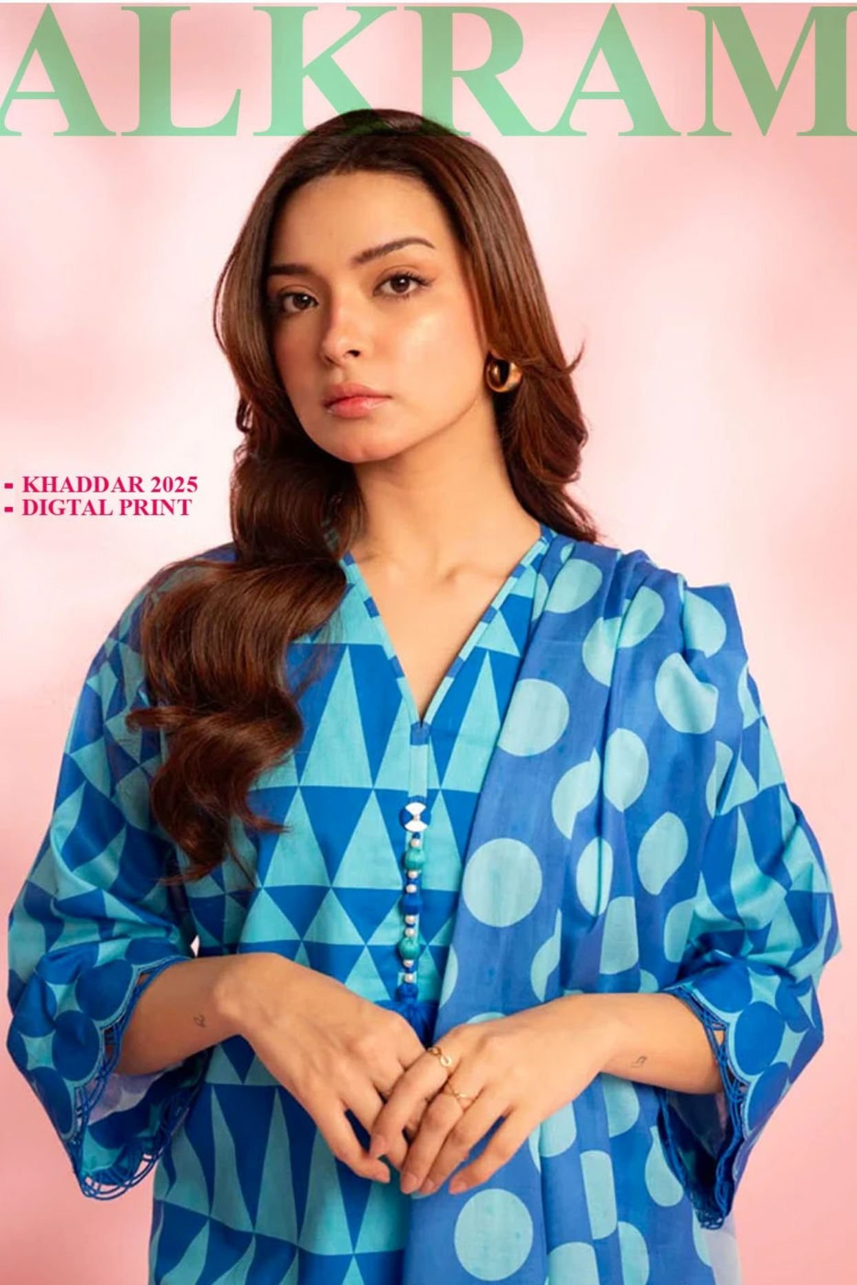 This elegant 3-piece Khaddar suit from AL-KARAM combines style and comfort. The soft, breathable fabric is perfect for everyday wear or casual gatherings. The printed shirt and dupatta, paired with plain trousers, create a sophisticated and modern look.