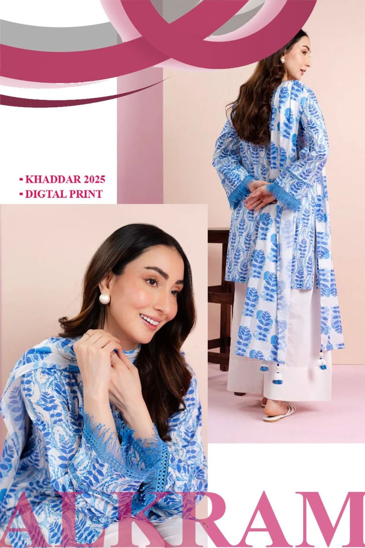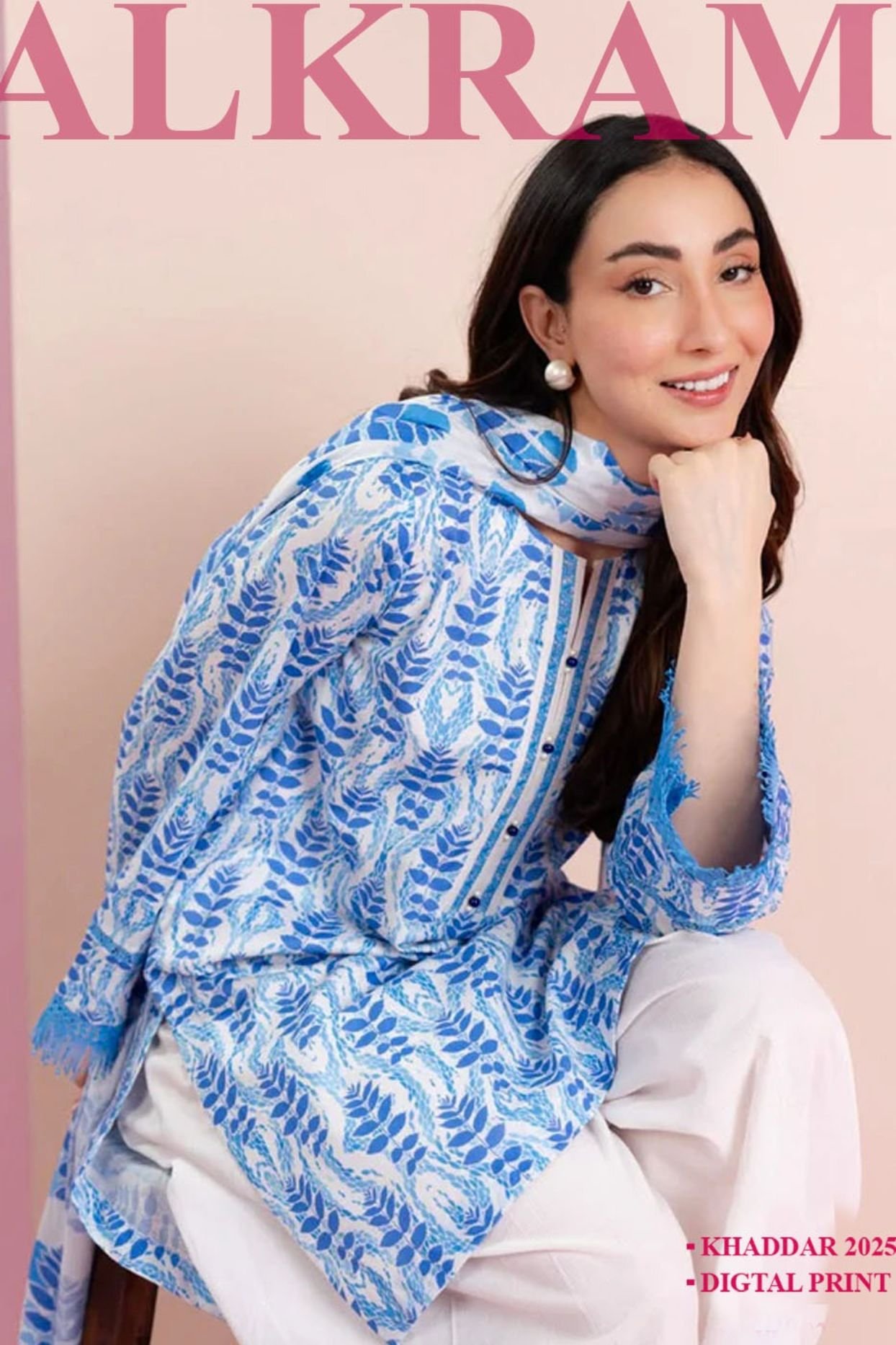 This elegant 3-piece Khaddar suit from AL-KARAM combines style and comfort. The soft, breathable fabric is perfect for everyday wear or casual gatherings. The printed shirt and dupatta, paired with plain trousers, create a sophisticated and modern look.